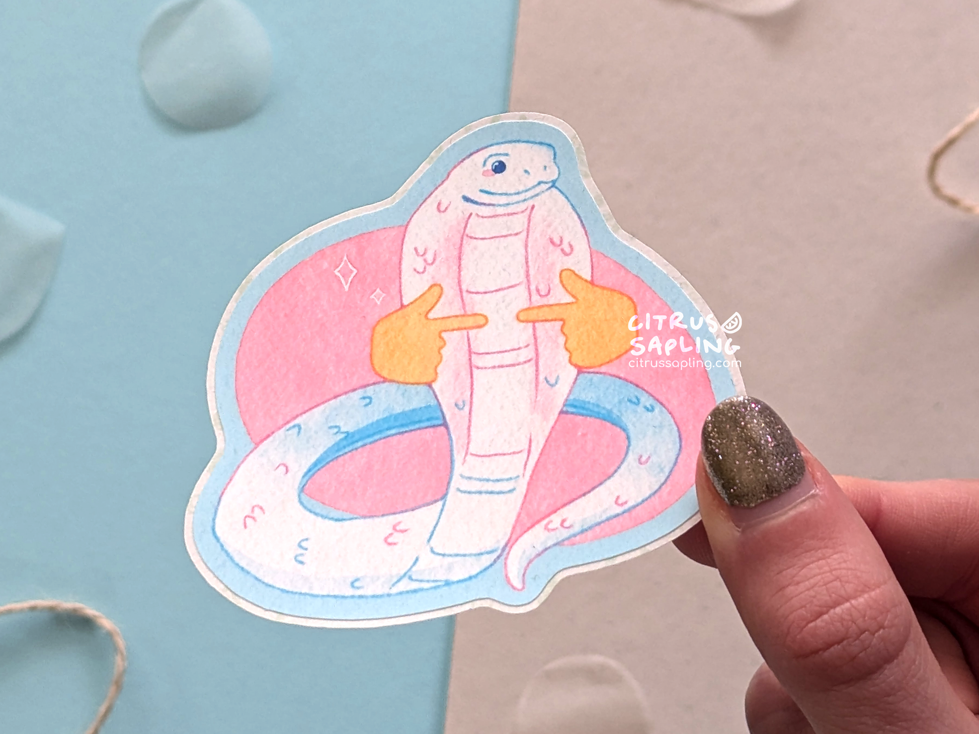 👉👈 A sticker of a leucistic cobra, with an easy peel edge. Perfect for decorating notebooks, laptops, or whatever you desire!