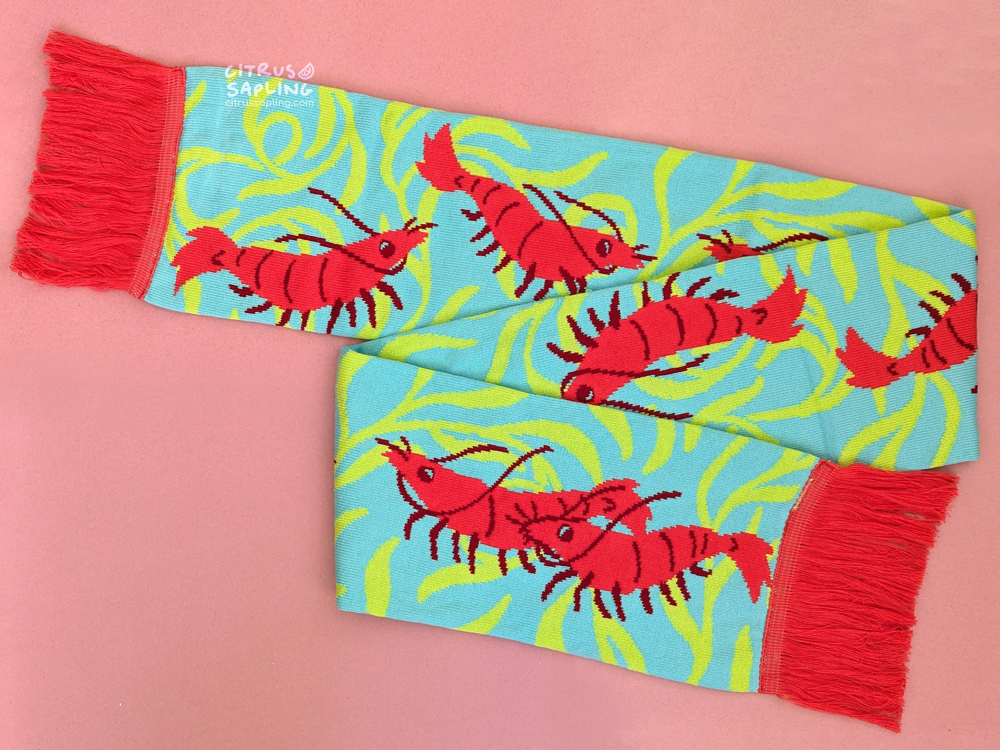 A soft and comfy knitted shrimp scarf to keep you warm!