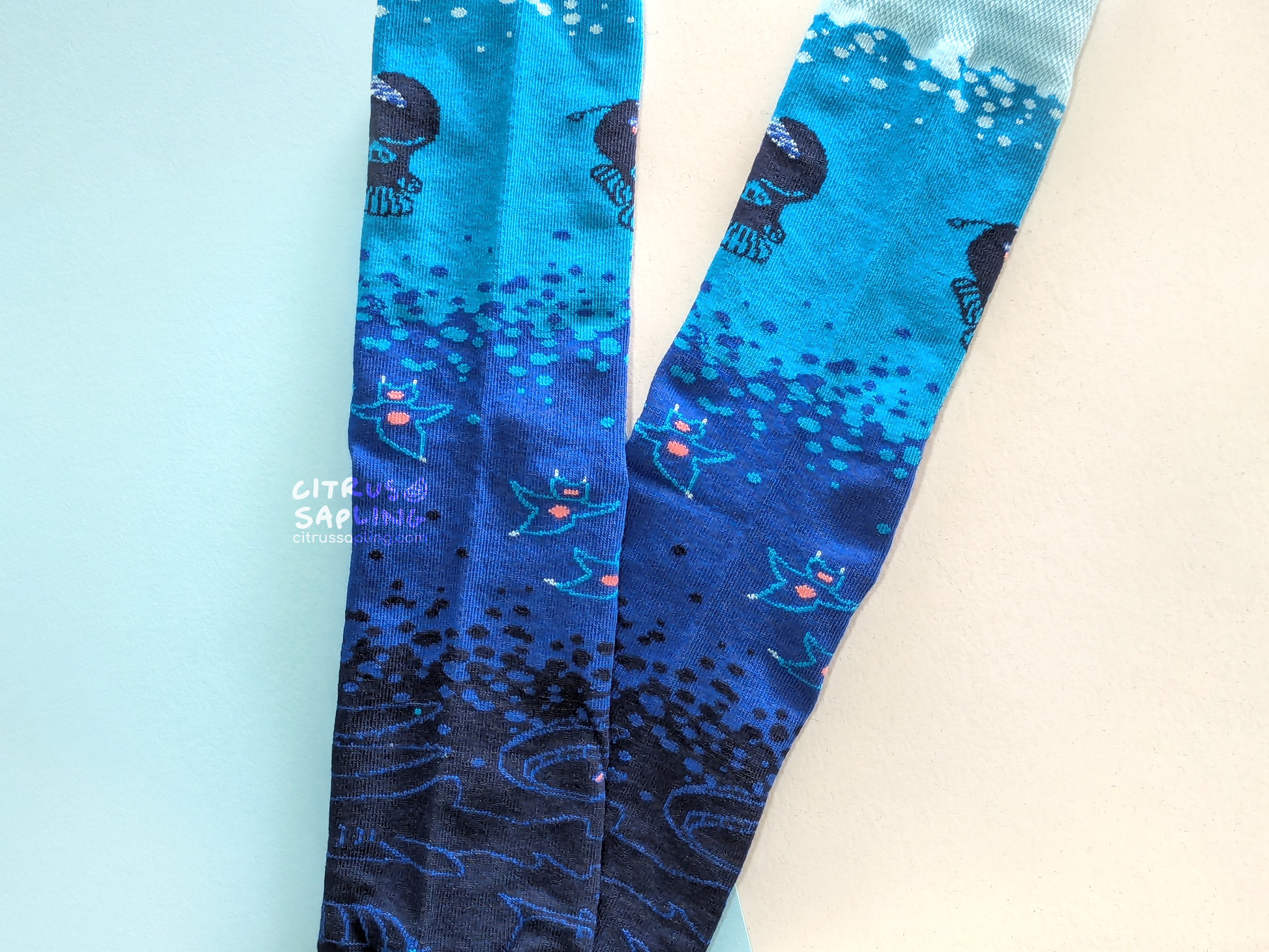 Soft and comfy woven socks with deep sea creatures! Inspired by the video of the anglerfish swimming to the surface.